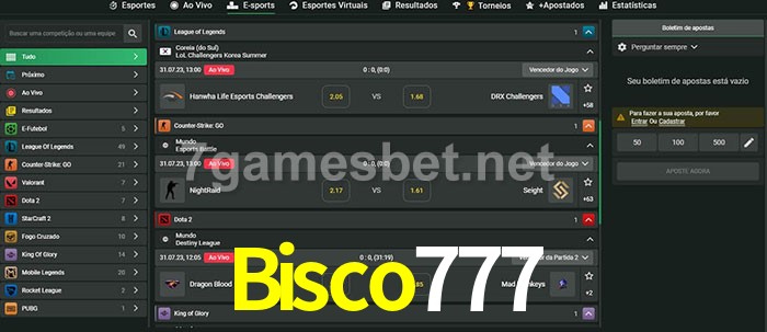 A aposta Bisco777 oferece aos jogadores a experiência mais conveniente de apostas em eSports!